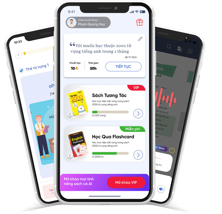 Trọn bộ tính năng VIP: luyện phát âm AI và luyện viết không giới hạn, Học offline, Còn lại giữ nguyên nhá
