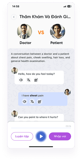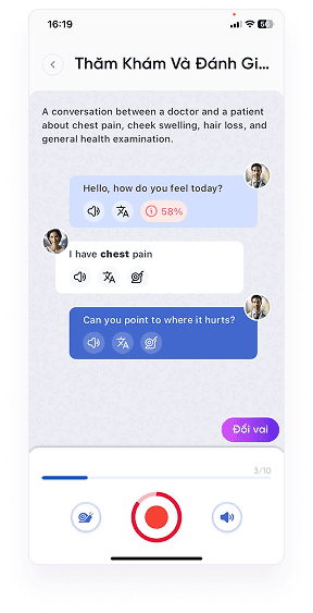 Luyện nói siêu chi tiết với công nghệ AI – chấm điểm từng từ, bắt lỗi từng âm. Biết mình sai chỗ nào để sửa ngay, nói chuẩn hơn sau mỗi lần luyện. Tải app để nâng cấp phát âm hôm nay!